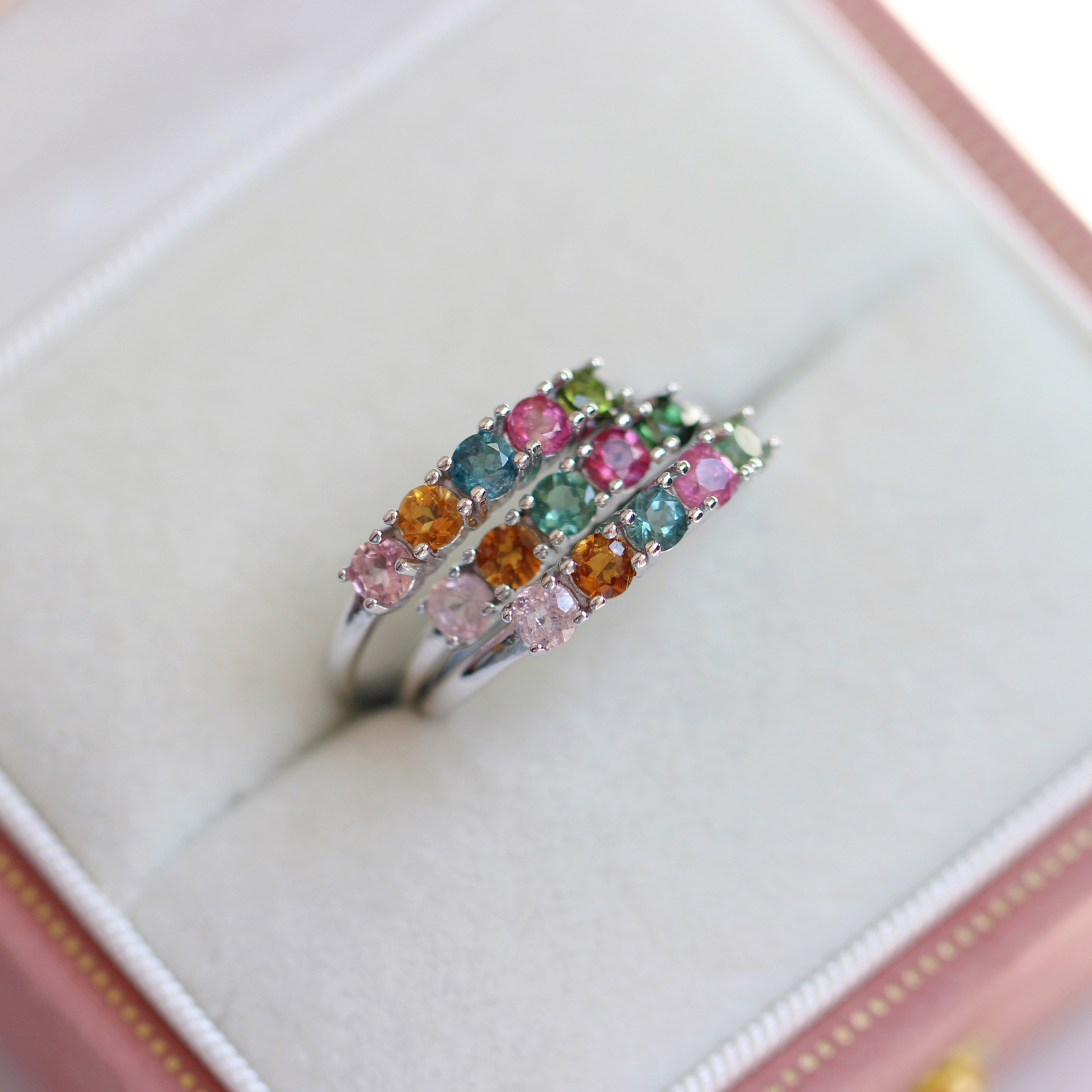 Natural Tourmaline Ring Dopamine Colorful Candy Gemstone Open Ring S925 Silver Chain Mix and Match Double Ring Row Ring