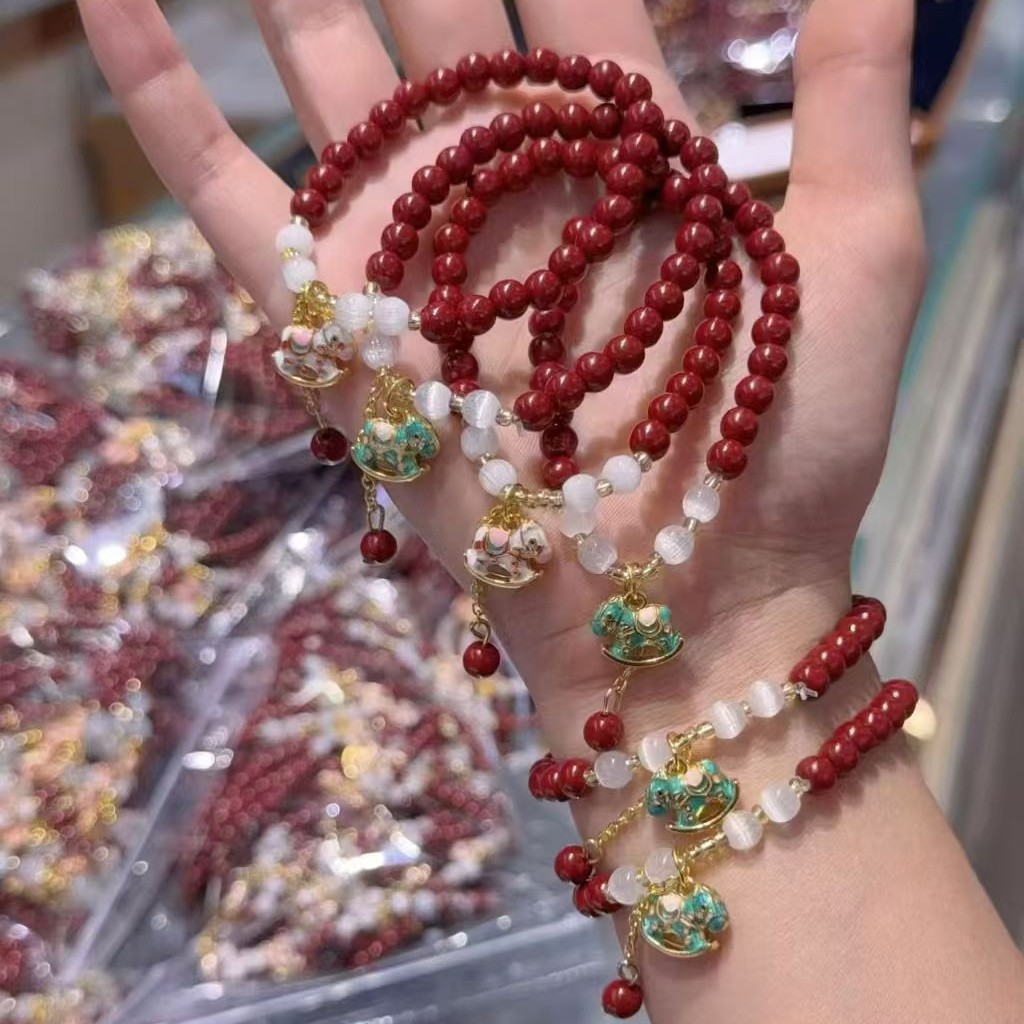 Minimalist Imitation Cinnabar Versatile Cat's Eye Rocking Horse Bracelet Ethnic Style Fashion High-End Student Best Friend Bracelet