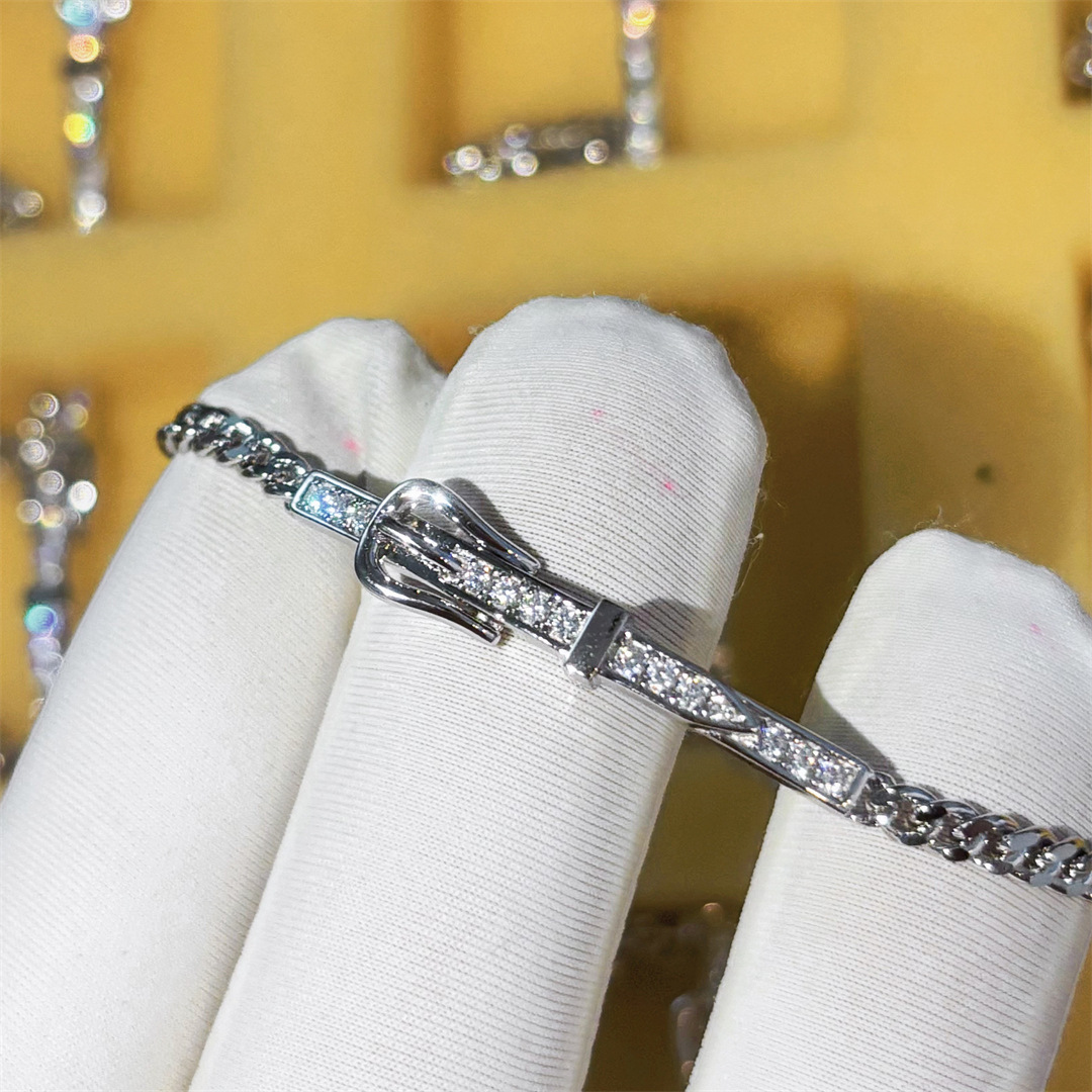 2025 New Belt Buckle Bracelet S925 Silver Imitation Diamond Cuban Chain Bracelet Work Clothing Mix and Match Single Wear Bracelet Live Broadcast