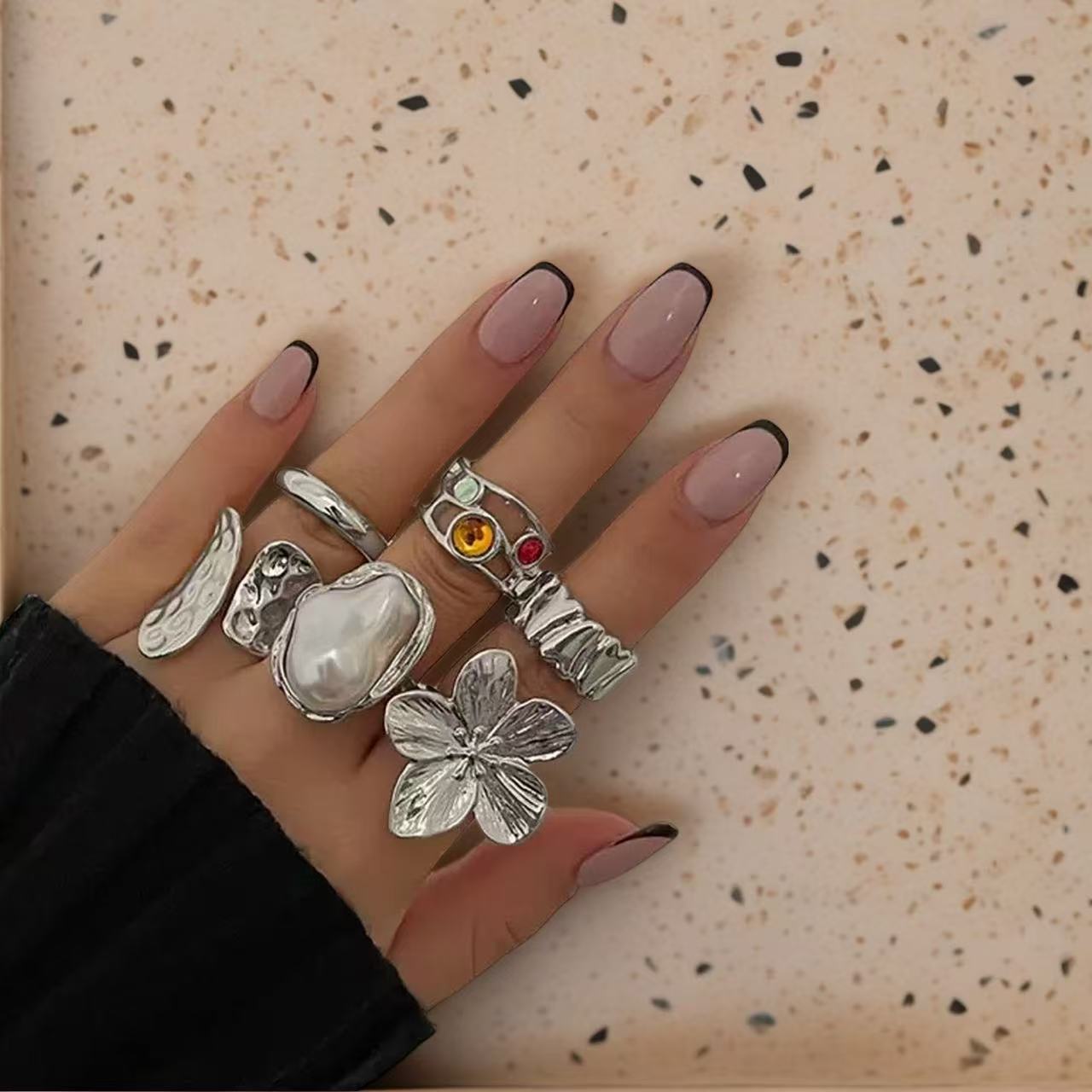 European and American Hot-Selling Stacking Ring Set, Pearl Flower Geometric Shape Mix and Match Ring, Personalized Niche Design Hand