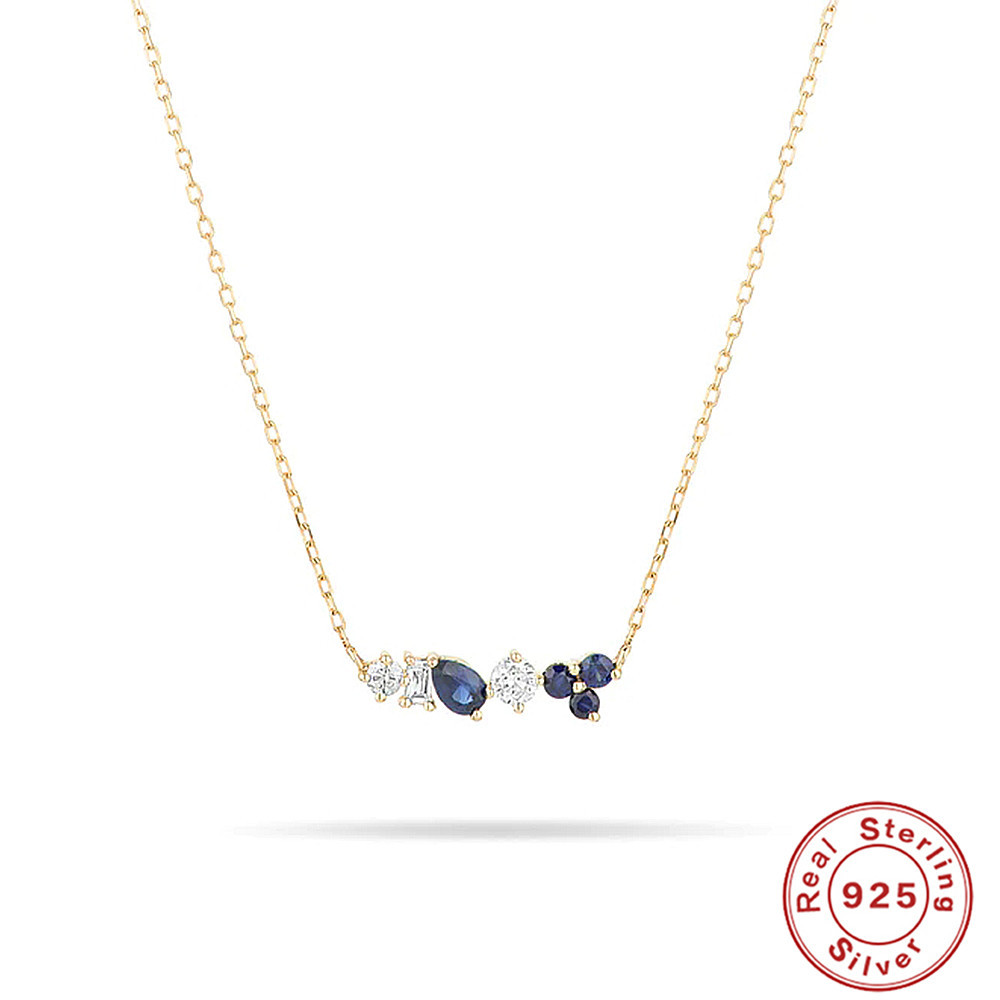 S925 Sterling Silver Fashion Zircon Mix Perfect Arrangement Four Claw Zircon Collarbone Necklace European and American French Style Necklace