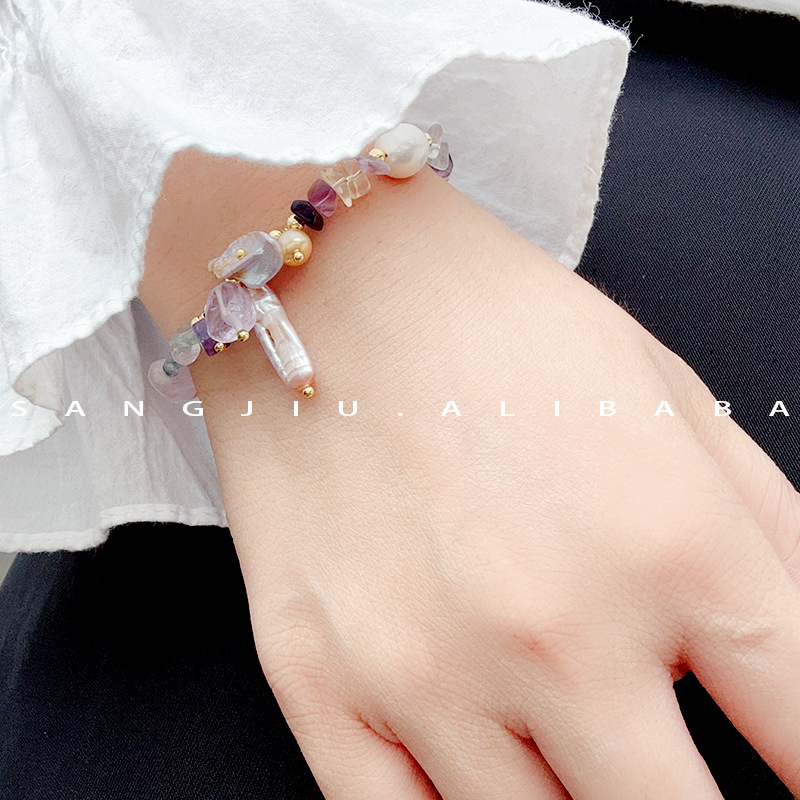 At first sight, I fall in love with colorful fluorite long pearl bracelet at large princess wind sweet mix and match handmade beaded jewelry wholesale