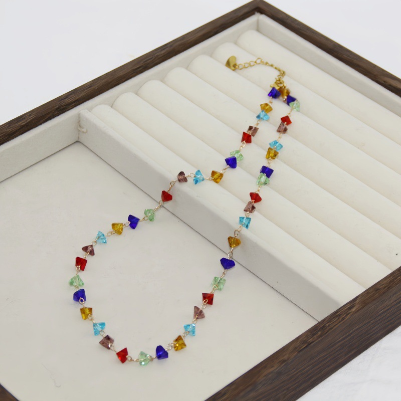 Collection of Vintage-Style Glass, Natural Stone, Enamel, and Pearl Necklaces with a Chinese and Western Light Luxury Style for Women