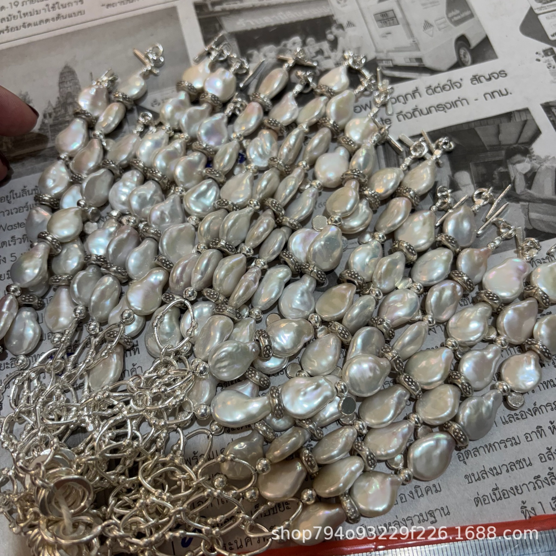 Sicily Thai Handmade 925 Sterling Silver Plain Silver Natural Button Baroque Pearl Bracelet Design Niche