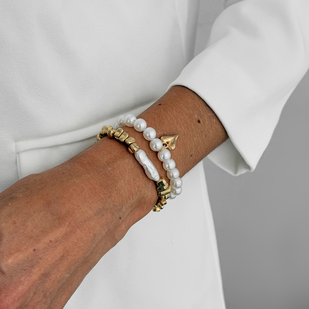 European and American Cross-Border Accessible Luxury Imitation Pearl Stacking Bracelet Set Irregular Shaped Crystal Beads Mixed with Heart-Shaped Bracelets