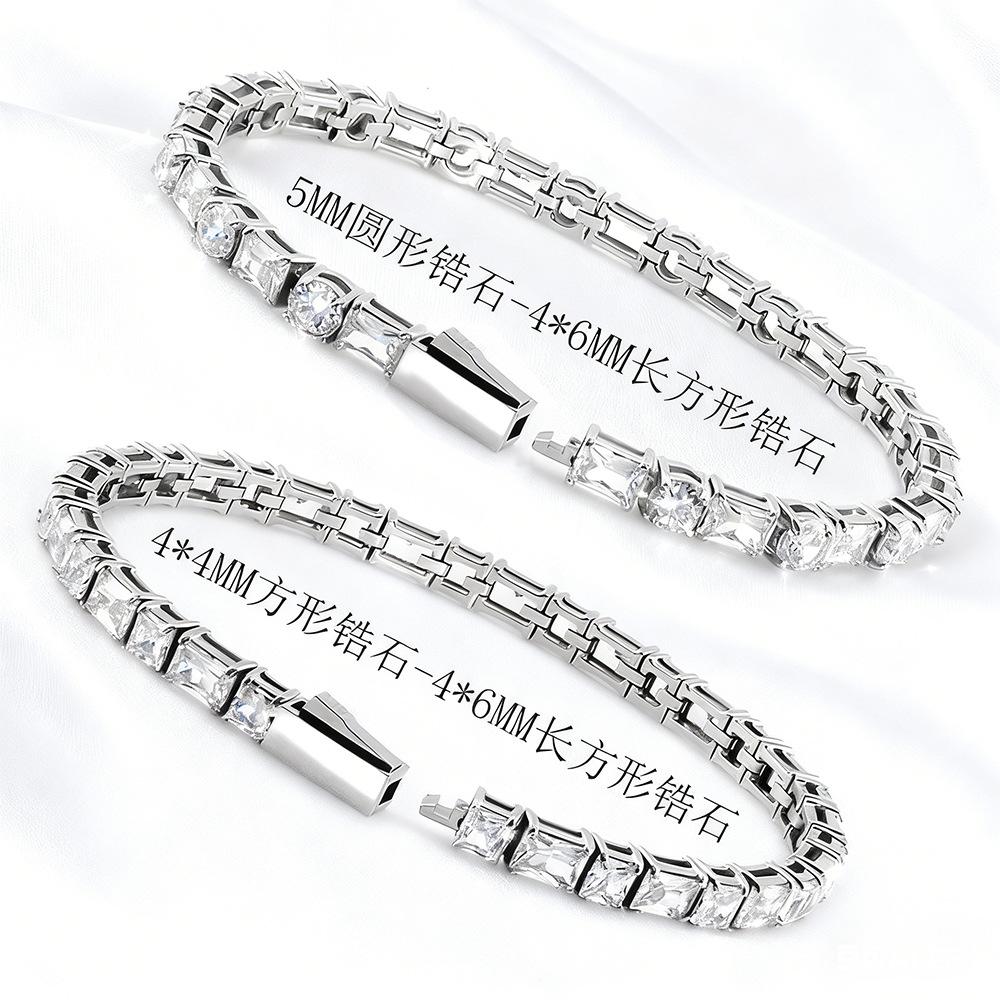 Cross-border preferred stainless steel square zirconium mix tennis bracelet high sense titanium steel zircon mix bracelet does not fade