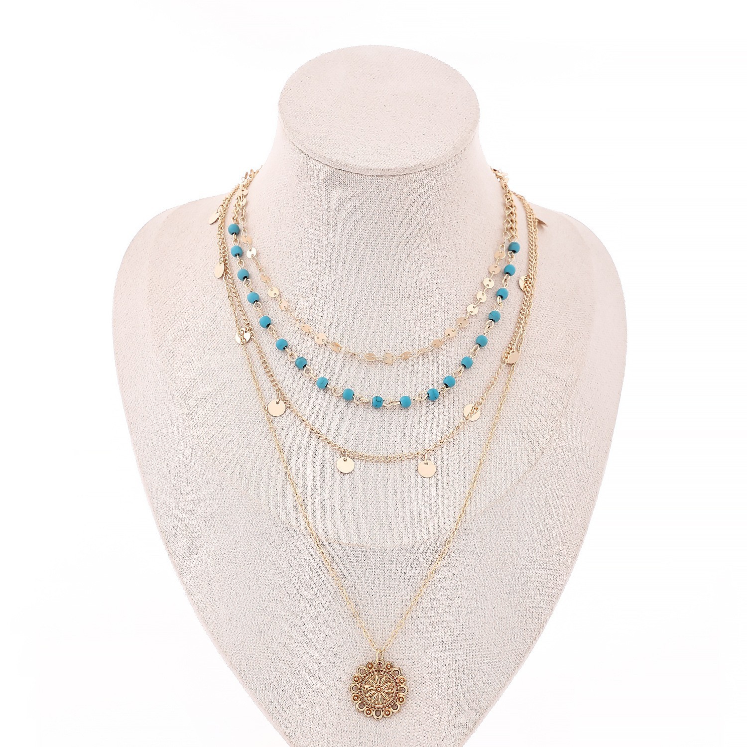 European and American Cross-Border Jewelry Multi-Layered Sequin Flower Plate Tassel Necklace Women's Niche Turquoise Mix and Match Handmade Chain Necklace