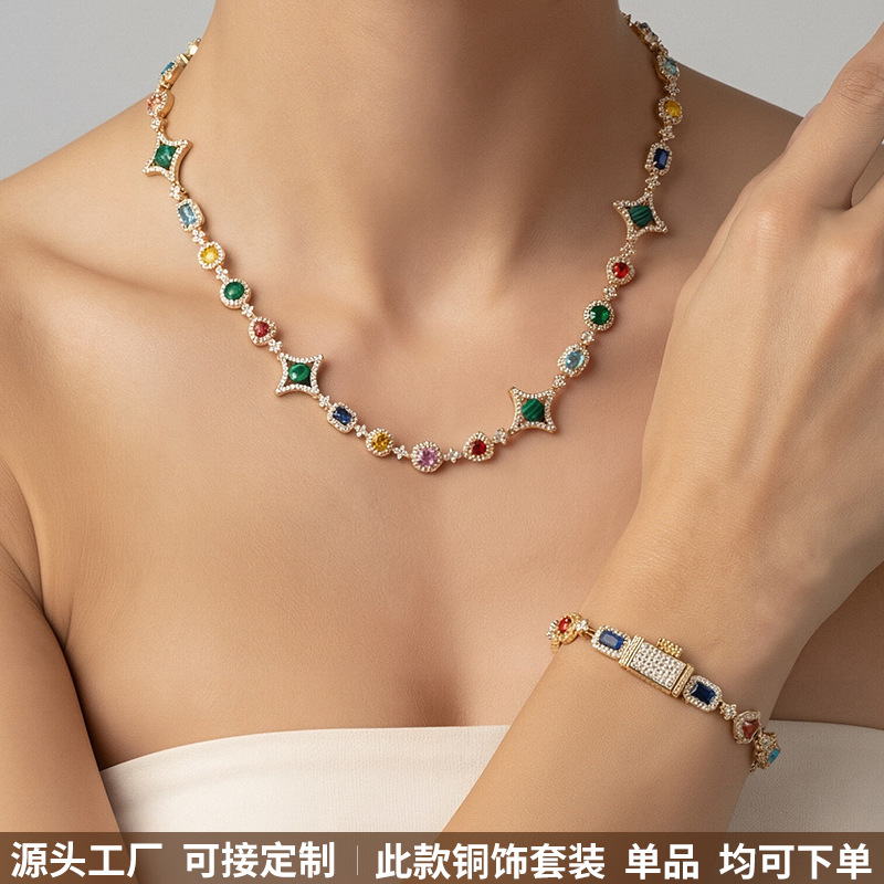 Colorful Mix and Match Necklace European and American Cross-Border Jewelry Light Luxury Niche Clavicle Chain Copper Inlaid Zircon High-End Fashion Bracelet
