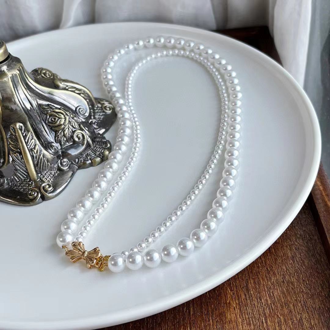 4MM8MM Mix and Fold Wear Double Layer Beads Round Shijia Pearl Necklace