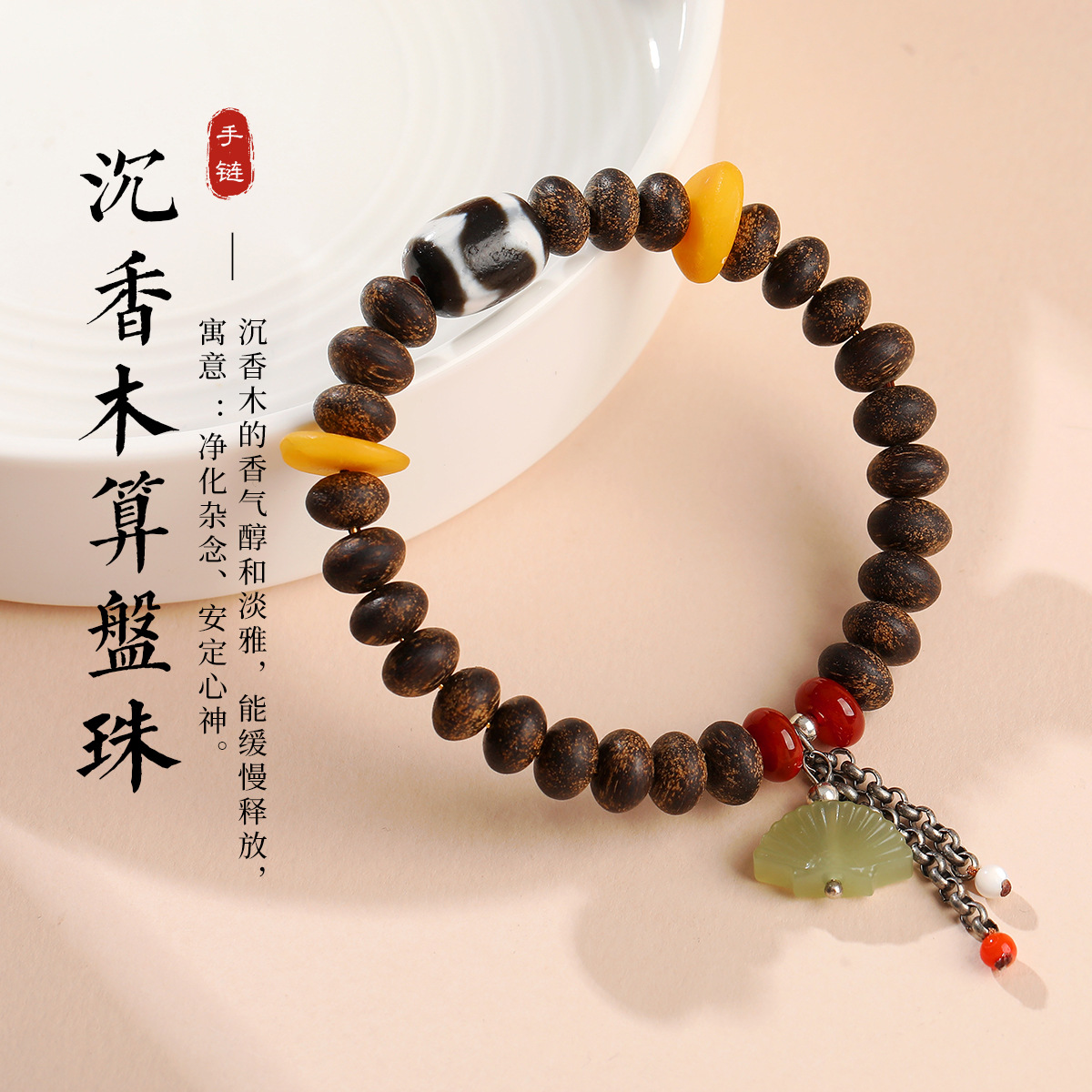 Agarwood Abacus Bead Bracelet Forest Style Literary Single Circle Bracelet Mixed with Jade Chinese Style Rosary Couple Gift Bracelet