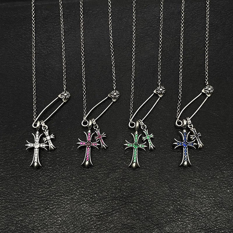 Vintage Cross Necklace with Double Crosses for Men and Women, Trendy and Unique Collarbone Chain, Popular Style
