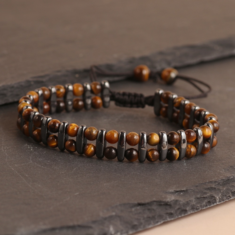 Tiger Eye Double Layer Braided Bracelet Mix and Match Double Row Fashion Casual Accessories