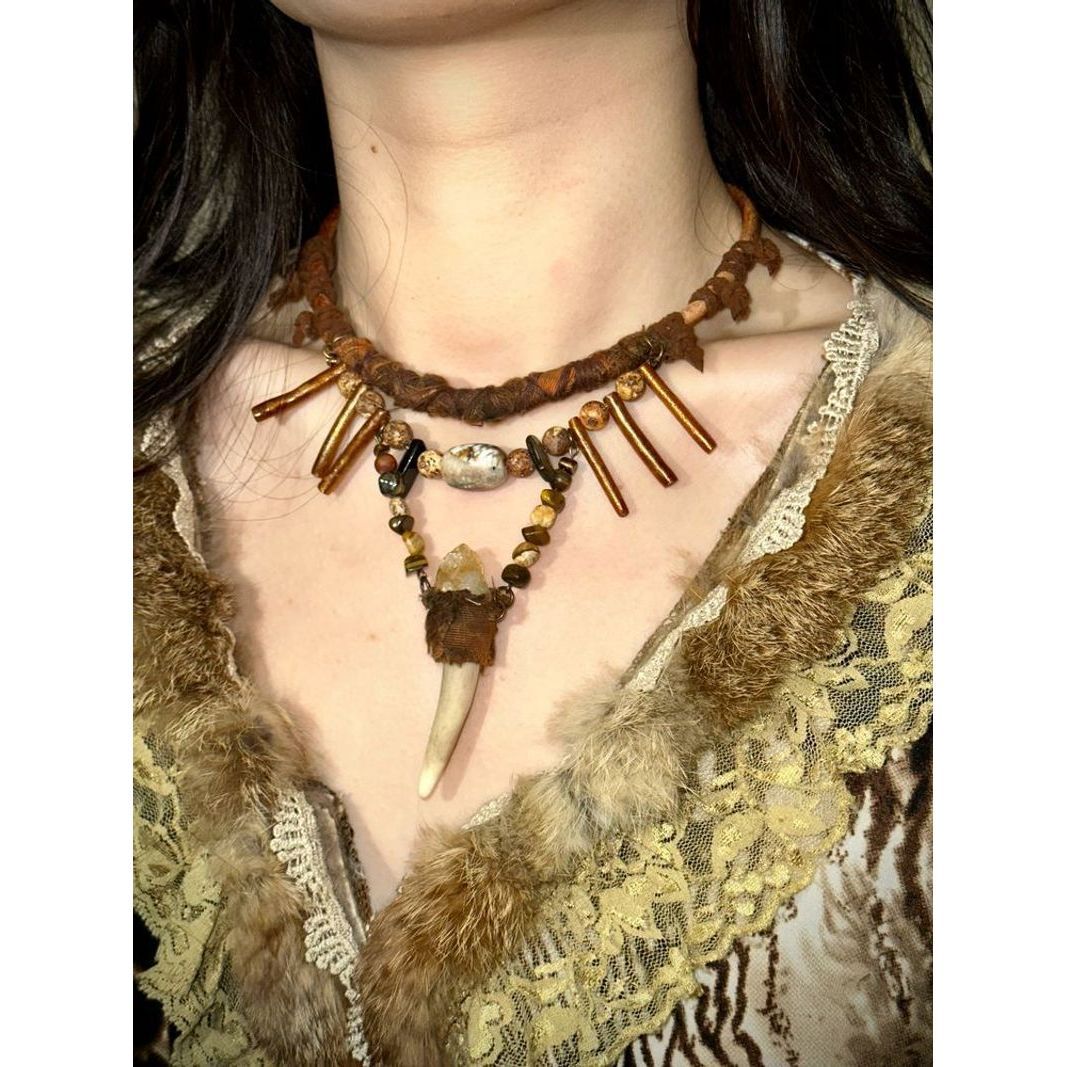 Free and Wild Unique Exaggerated Niche Mix and Match Style Wasteland Priest Tribal Style Autumn Necklace