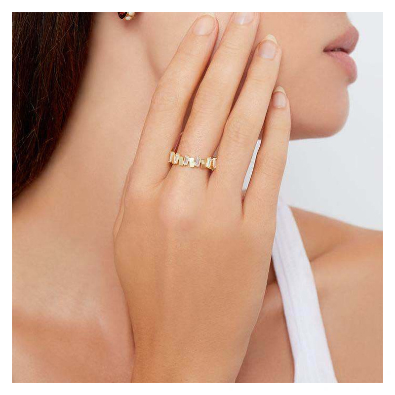 Bright Hair European and American Fashion Internet Celebrant Golden INS Style Simple Mix and Match 18K Gold Plating Ring Textive Daily Wear Finger