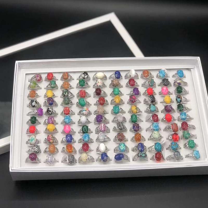 A Variety of Natural Stone Rings, Cross-Border Foreign Trade Rings, Stone Hand Jewelry Rings, Raw Stone Mixed Boxed Rings