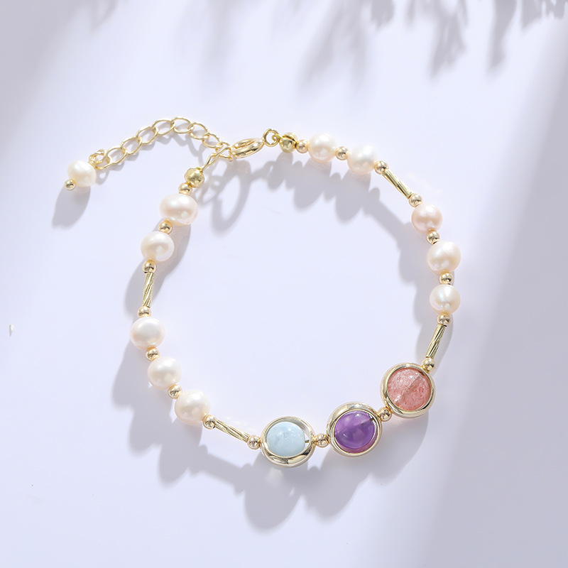 [Samsung Transporter] Natural Crystal Pearl Rich Bracelet Women's Retro Modern Mix and Match Design High-end Feeling Bracelet