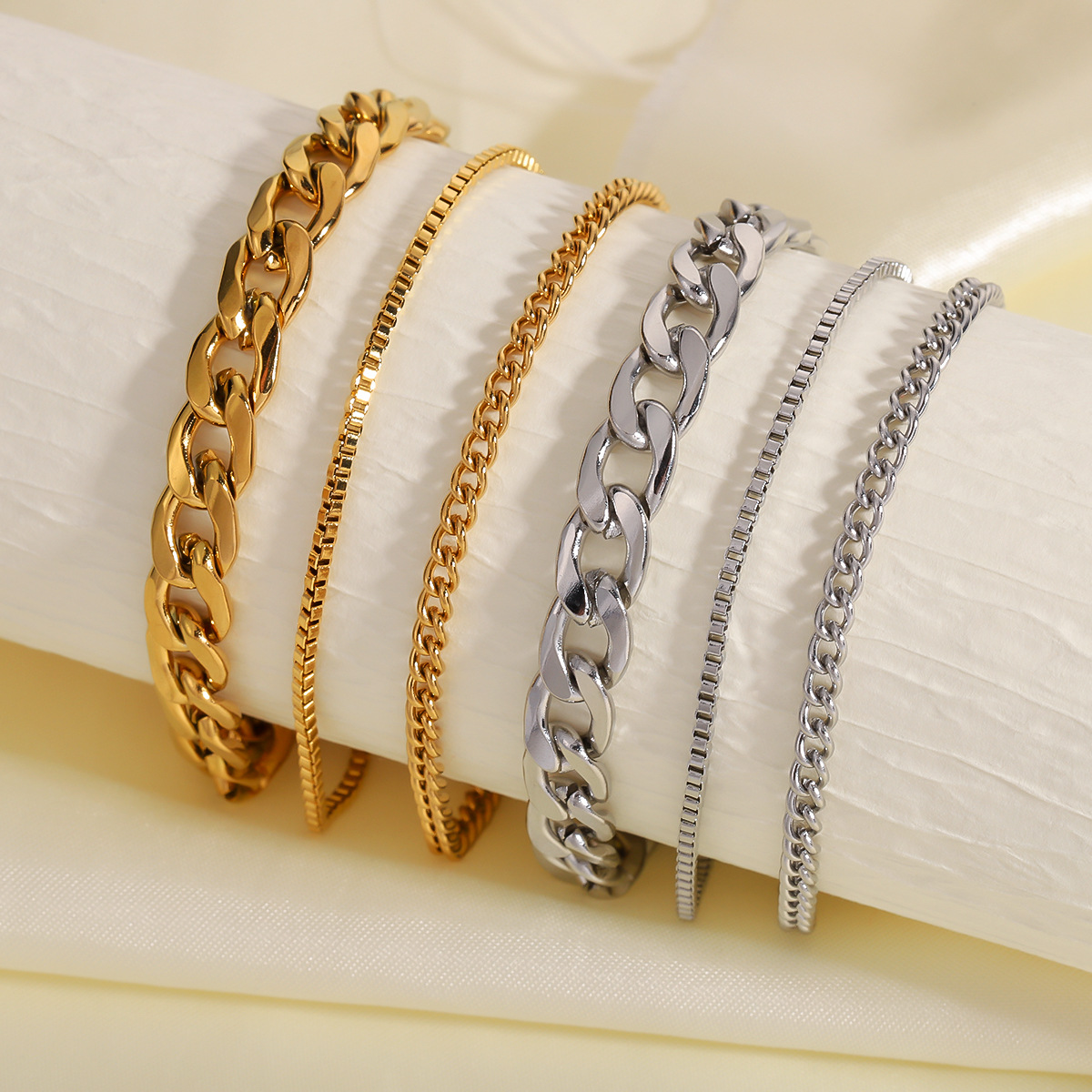 European and American Cross-Border High-End Hand Jewelry Multi-Layer Chain Mix and Match Stylish Exaggerated Thick Chain Simple Bracelet Set 3-Piece Set