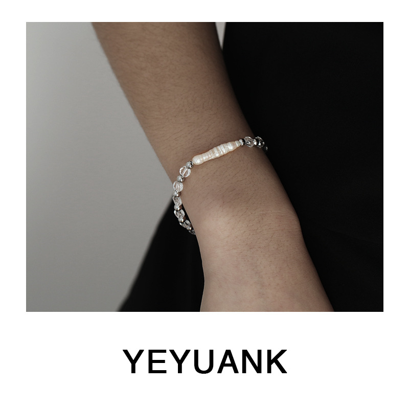 Wild sunflower geometric transparent crystal ins personality mix and match cold style natural baroque pearl bracelet bracelet for women