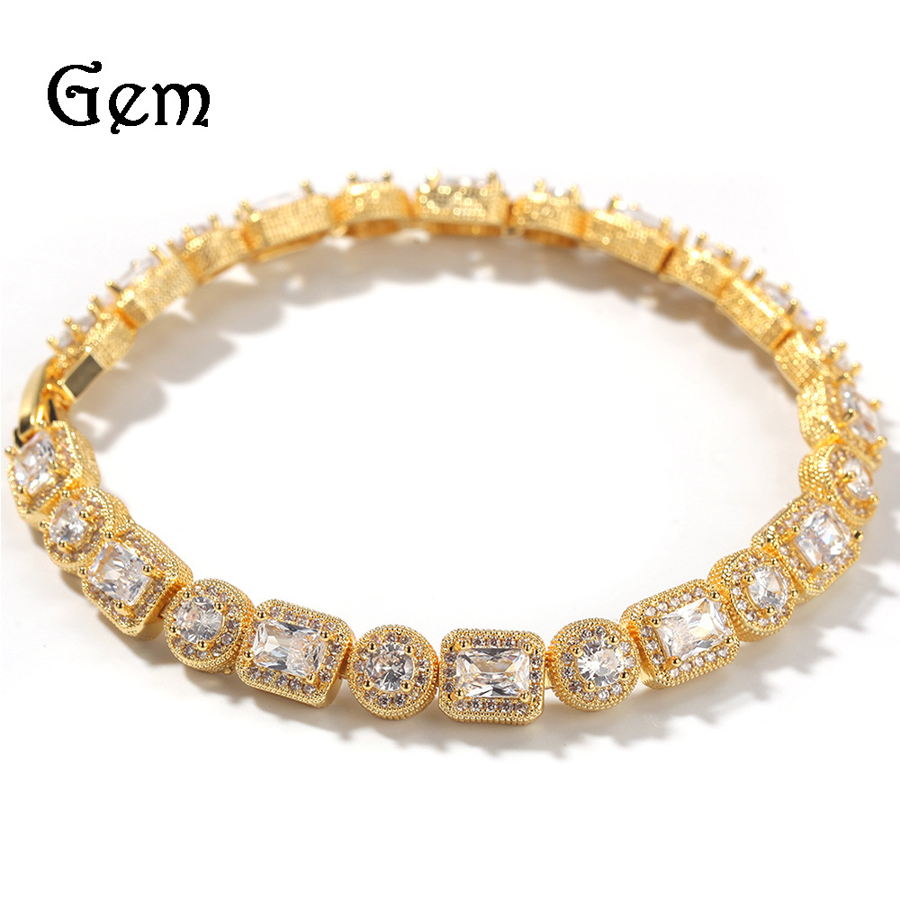 Cross-Border Supply Ancient Cute Hip-Hop Men's Bracelet Geometric Shape Square and Round Mixed Copper Inlaid Zircon Street Alternative Jewelry