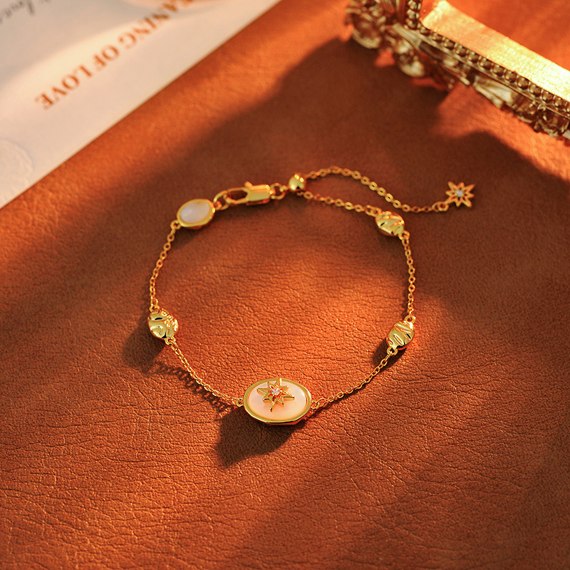 Dijia compass eight mans star necklace women's clavicle chain natural white fritillary agate niche design mix and overlap wearing bracelet