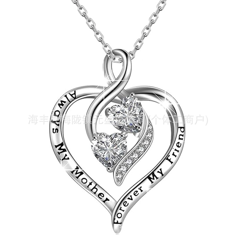 Cross-border wholesale S925 silver double diamond mixed heart-shaped necklace Women's Light luxury zircon fashion all-match necklace