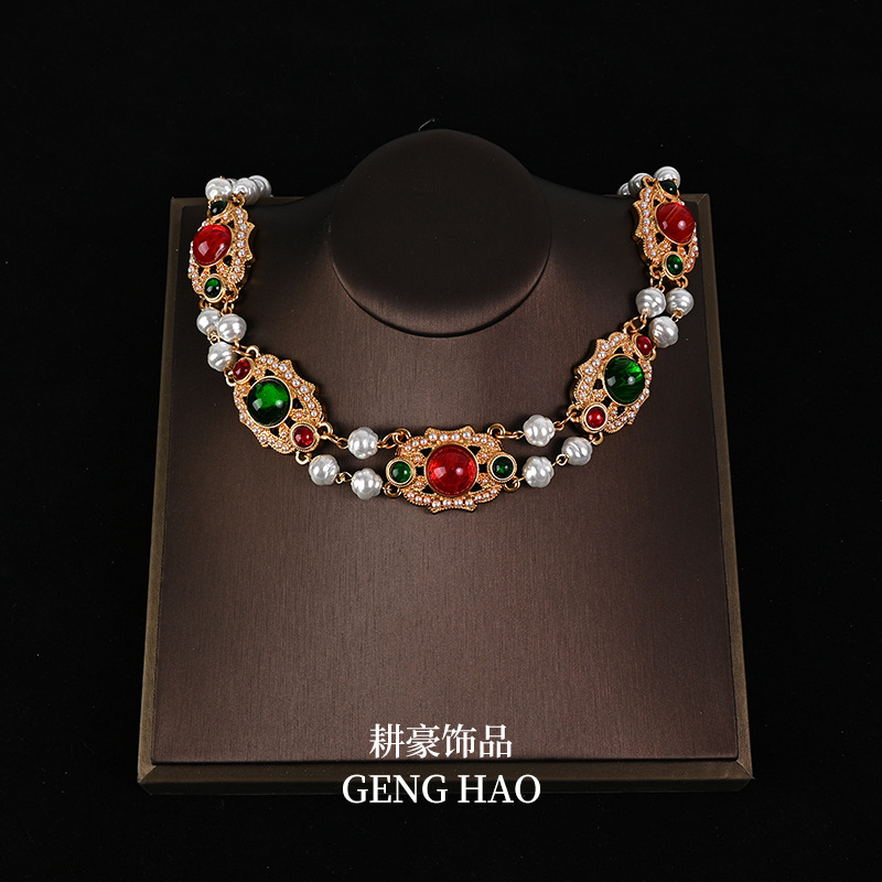 Middle Ages Light Luxury Heavy Industry Design Retro Court Style Electroplated Color Glaze Mix and Match Double-Layer Earrings Necklace suit