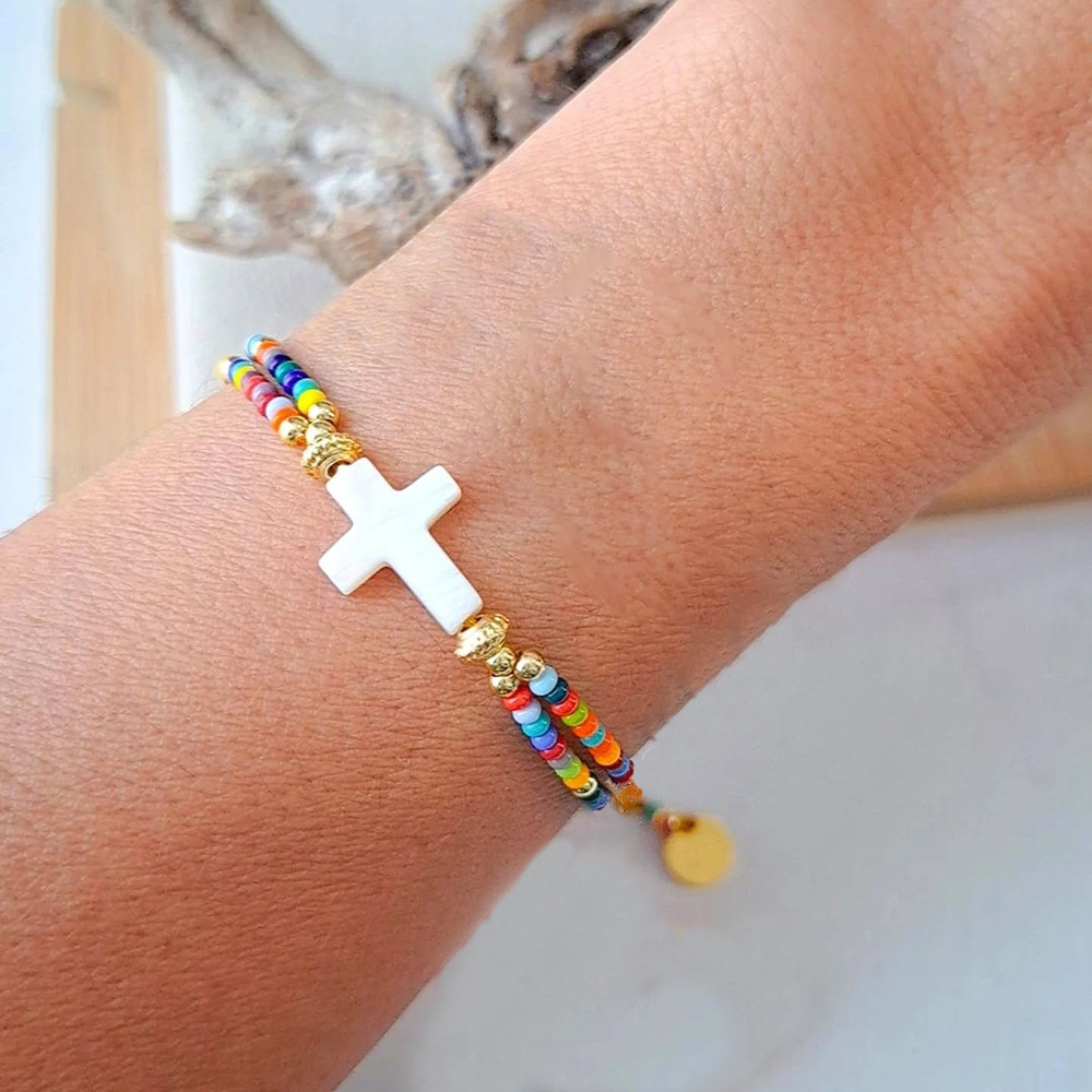 Extremely Fine Rice Beads Ins Style suit Niche Ethnic Style Cross Rice Beads Mix and Match Minimalist Beaded Bracelet Necklace for Women