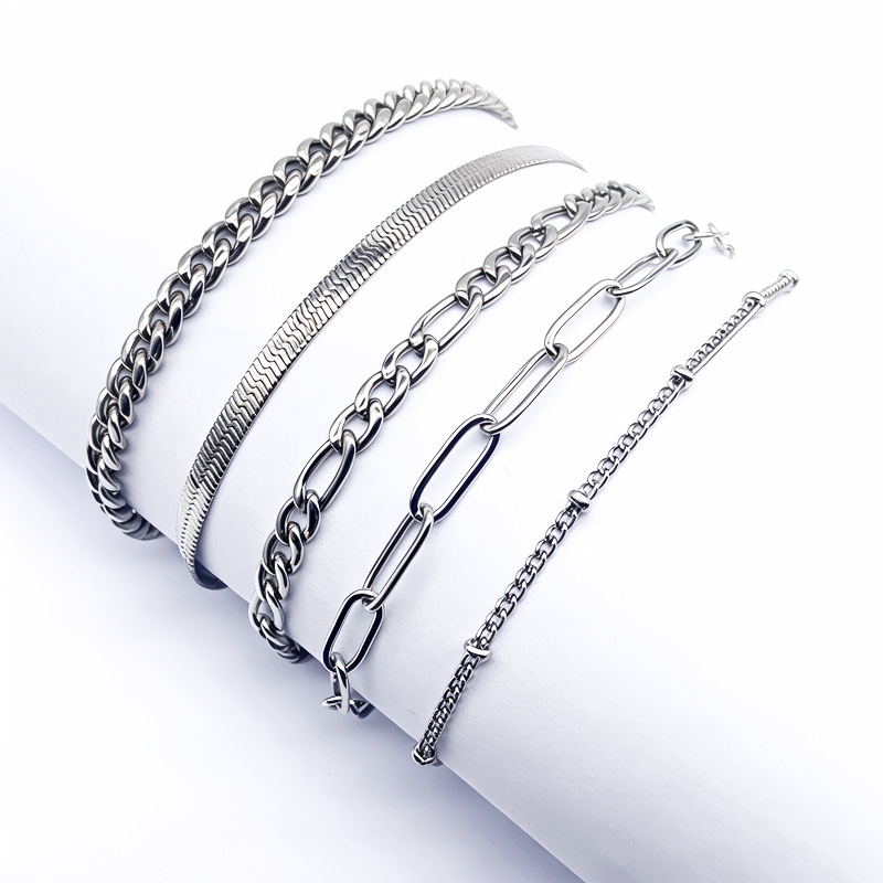 European and American Cross-Border Jewelry Stainless Steel Set Five-Piece Combination Fine Polished Bracelet Multi-Layer Mix and Match Personalized Bracelet
