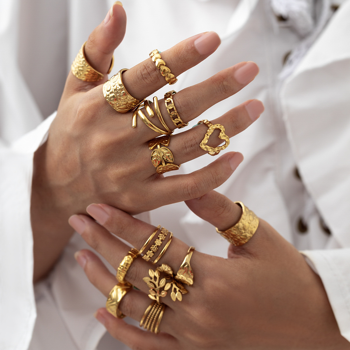 Cross-Border European and American New Mix and Match Fashion Ring Set for Women Hip-Hop Exaggerated High-End 18K Gold Ring Jewelry