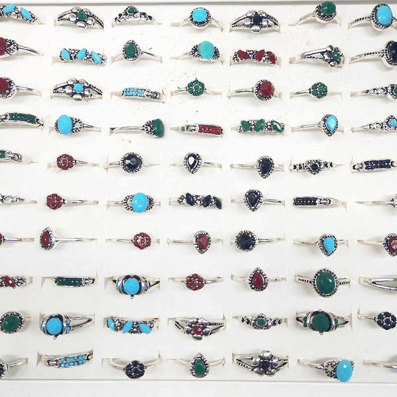 Factory Direct Sales European and American Fashion Retro Women's Rings, Multi-Style Colorful Stone Rings Boxed Mix and Match Wholesale