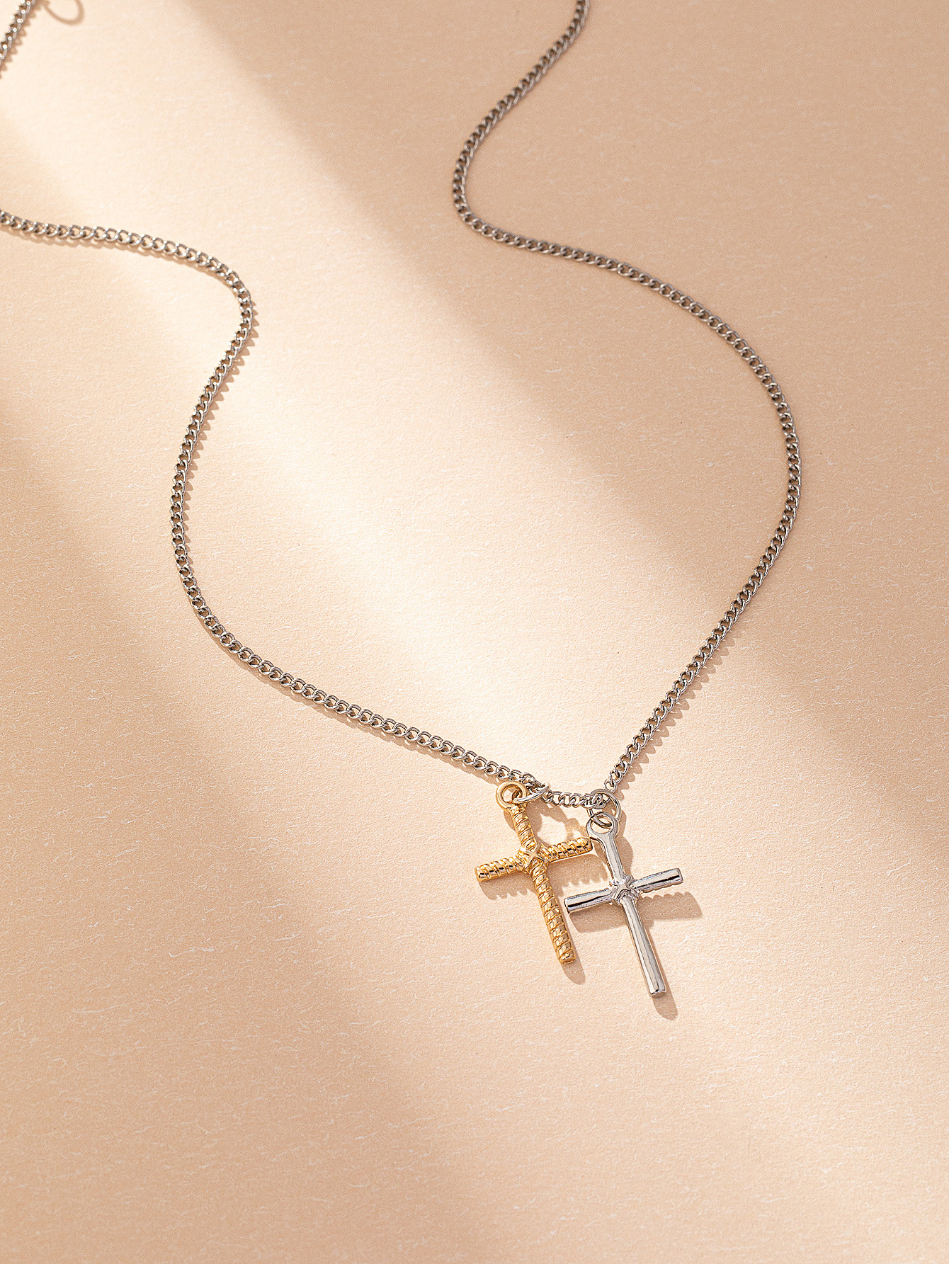 European and American cross-border jewelry two-color mixed cross necklace female personality daily fashion commuter chain clavicle chain