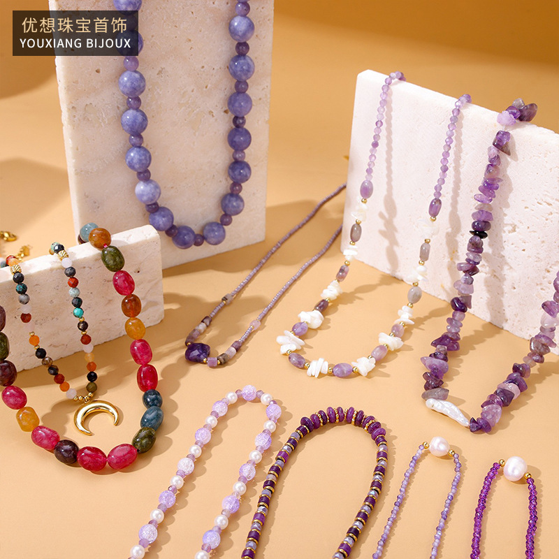 Cross-Border Hot-Selling Natural Stone Purple Pearl Dopamine French Niche Stacked Mixed Bead Necklace Live Broadcast Hot Item