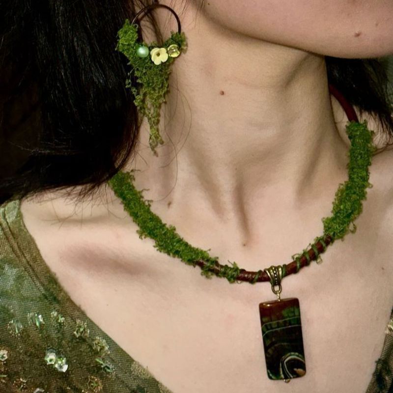 Forest Green Mix and Match Spring and Summer Accessories Personalized Creative Natural Style Earrings Necklace