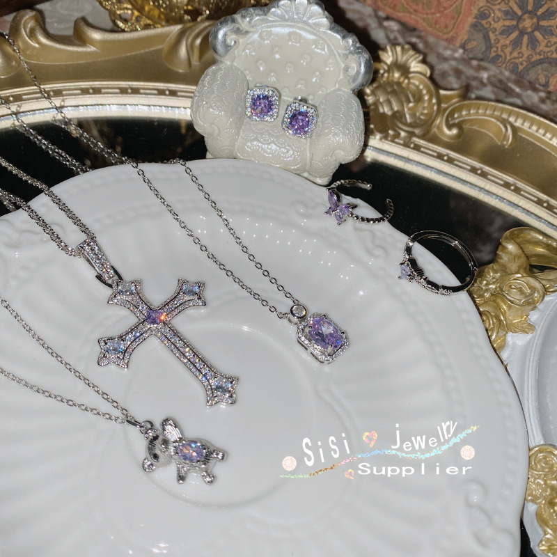 Sterling Silver S925 Double Pig Nose Personality Mix and Match Necklace Advanced Sense Crossbar Chain Tail Versatile Exquisite Classic