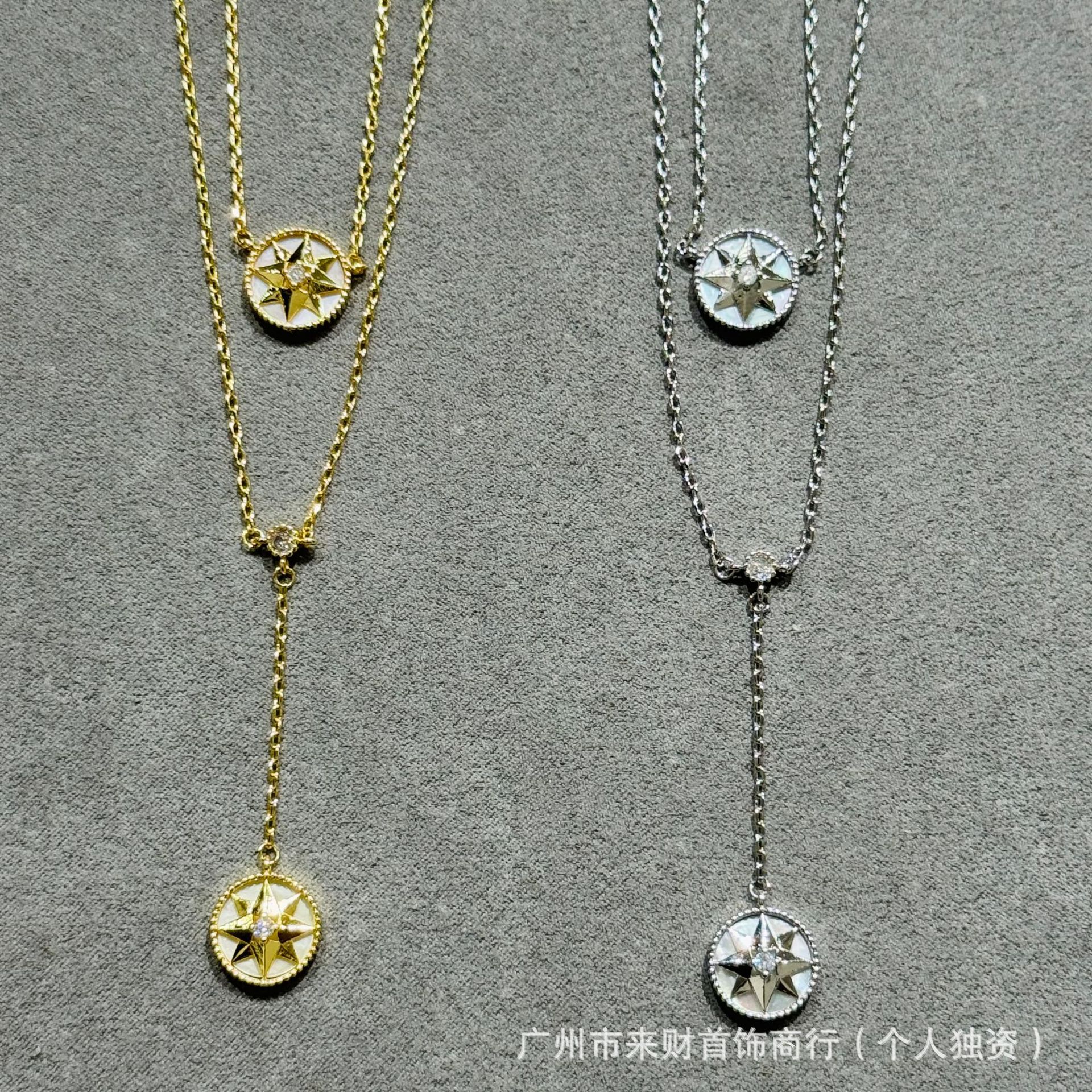 Dijia compass eight mans star necklace women's clavicle chain natural white fritillary agate niche design mix and overlap wearing bracelet