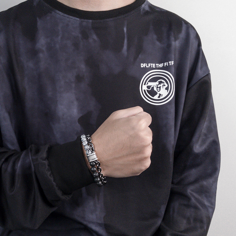 Volcanic Stone Natural Stone Frosted Bead Chain Beaded Titanium Steel Bracelet Metal Men's Bracelet Hot Selling Volcanic Stone Bracelet