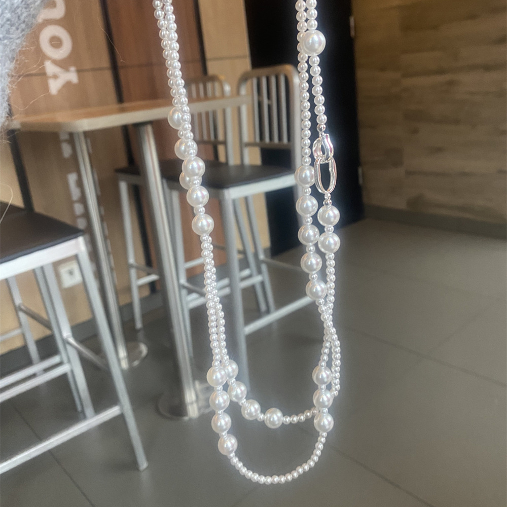 Fashion atmosphere 120MM mix size imitation Shijia pearl Australia white beaded elegant necklace sweater chain