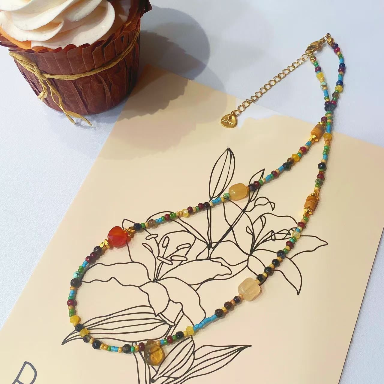 Designer Niche Stylish Fresh and Beautiful Colorfulful Real Stone Necklace Mixed and Matched Ethnic Style Beaded Necklace Clavicle Chain for Women