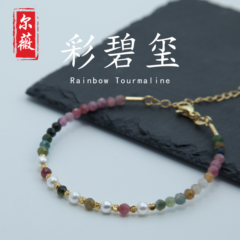 New fashion high sense color tourmaline natural stone bracelet sweet pink girl heart mix bracelet women