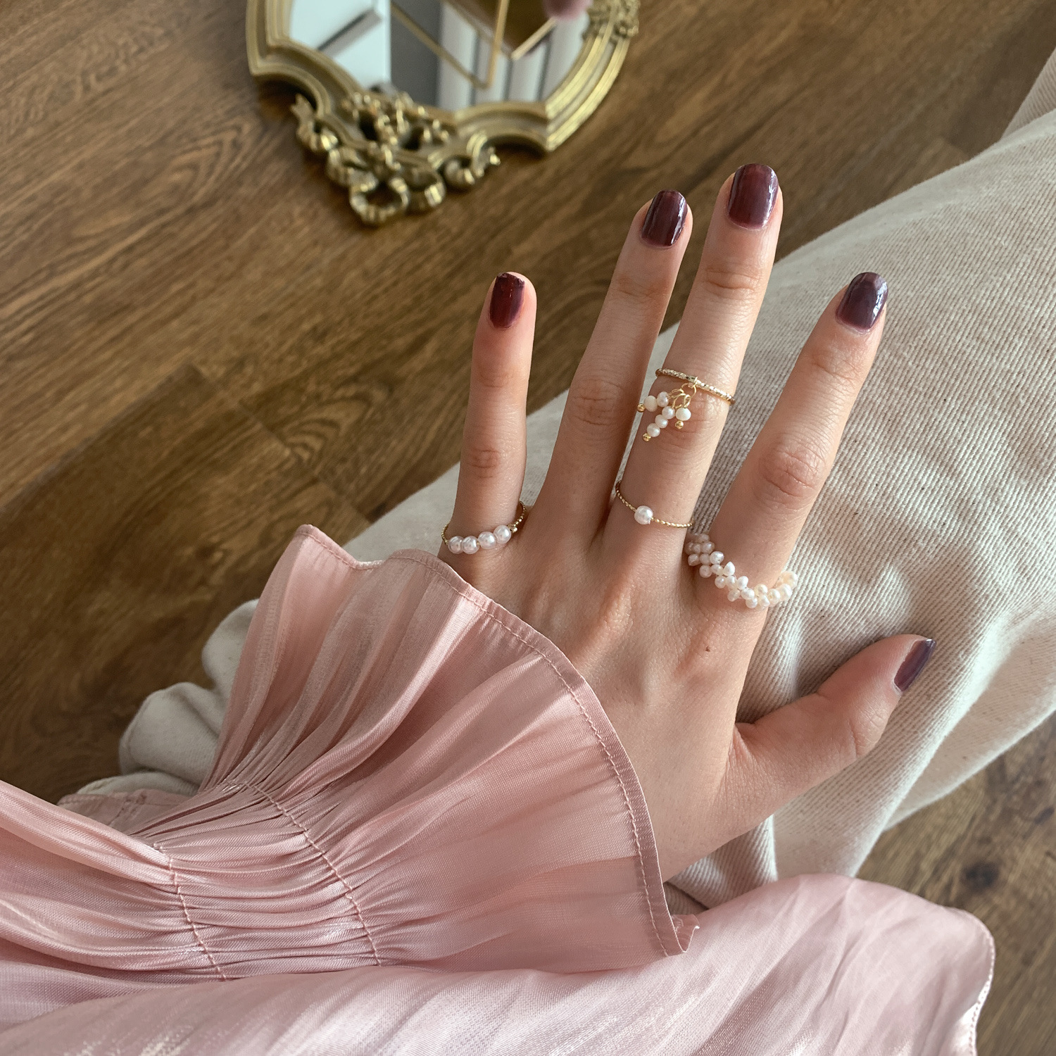 Discount] Firefly Pearl Hand-made Baroque Open Ring Ring Korean Mix and Match All-match Stacked Japanese Series