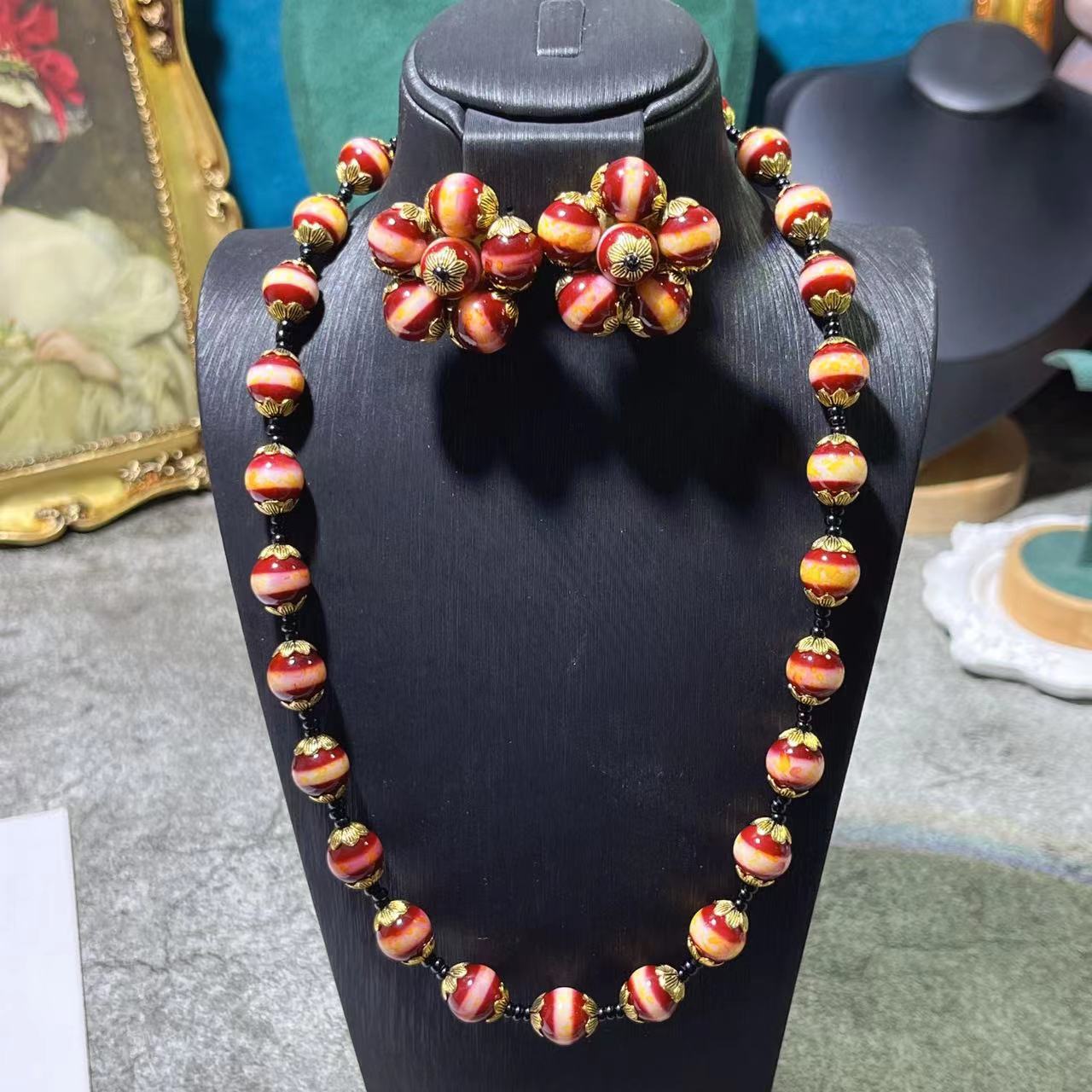 Middle Ancient vintage Original Design Coloured Glaze Colorful Mix and Match Long Necklace Earrings Bracelet suit Retro Versatile