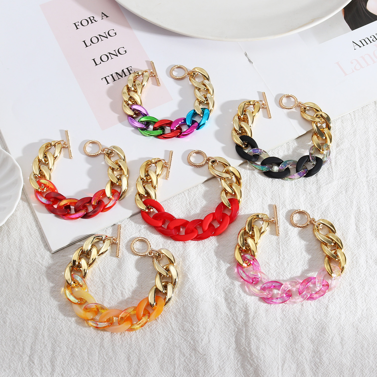 Trendy design European and American style jewelry mix and match colorful candy color personality fashion Joker chain resin bracelet for women