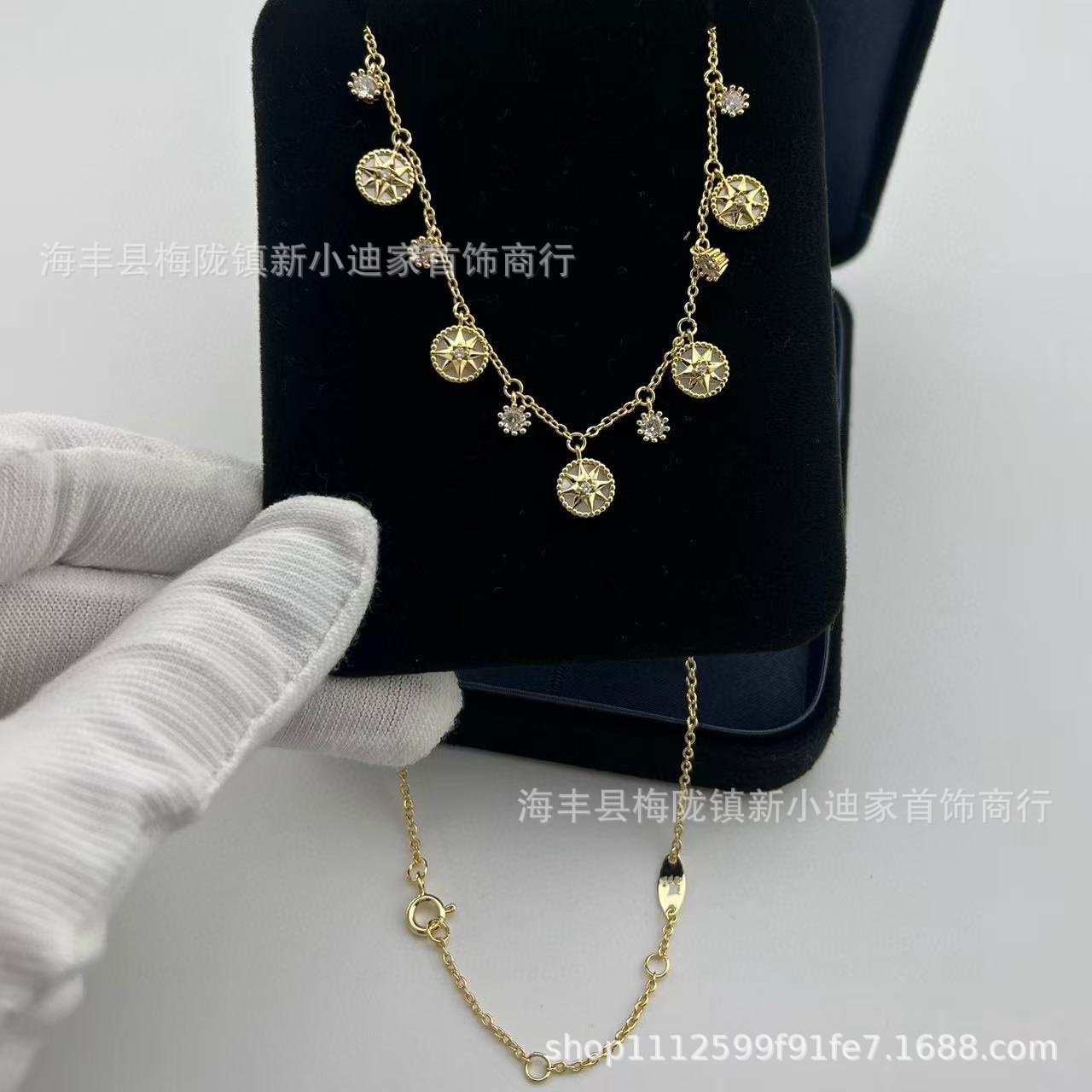 Dijia Compass Eight-Pointed Star Necklace Women's Clavicle Chain Natural Color White Fritillary Agate Mix and Match Stacking Bracelet Wholesale