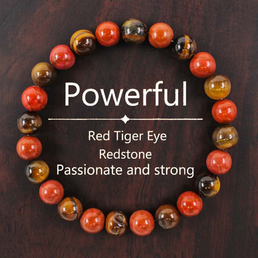 Mixed Natural Stone Bracelets, Tiger Eye Stone, Red Stone Beaded Bracelets, Power and Wealth, Cross-Border Wholesale for Men and Women