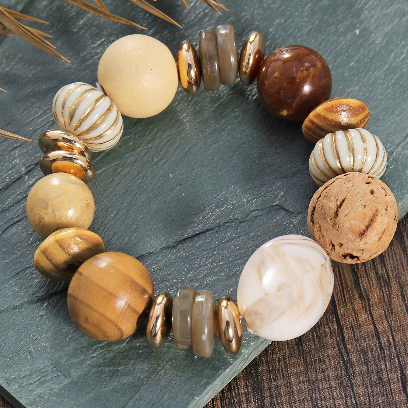 Cross-border hot selling simple all-match advanced log style wooden beads resin beads mixed beaded bracelet