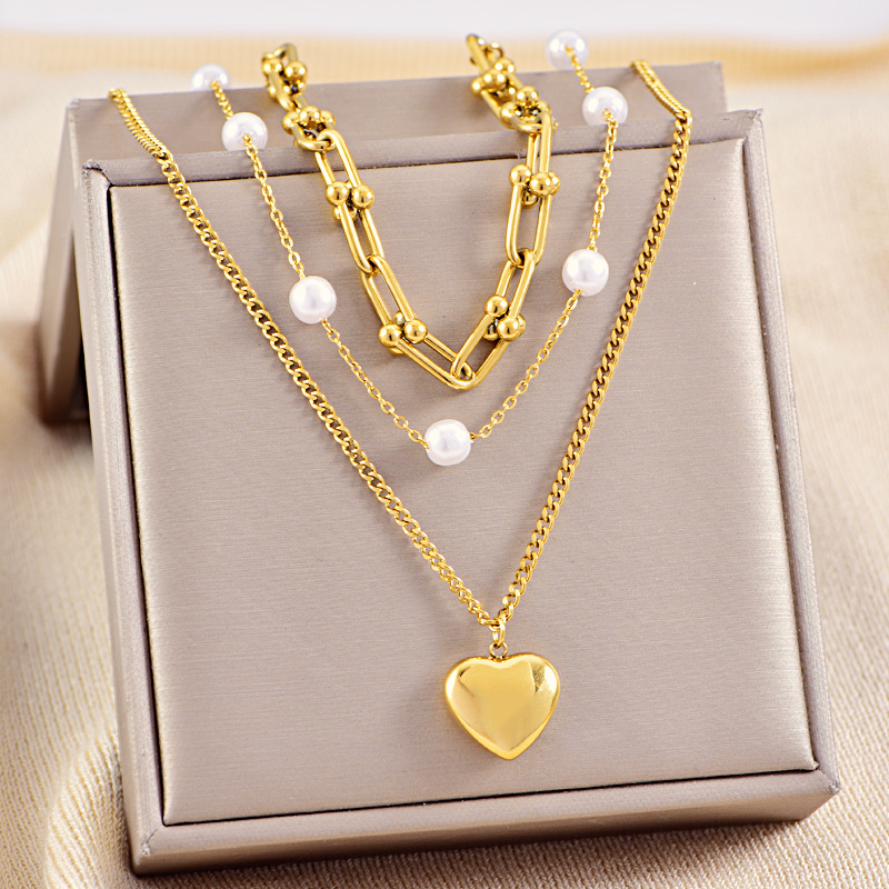 Personalized horseshoe chain mix and match three-layer stacked sweater chain smooth love titanium steel color retaining clavicle necklace factory wholesale