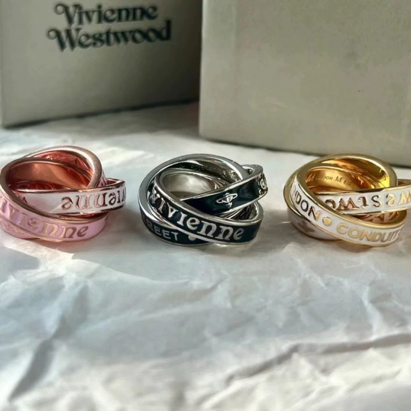 Empress Dowager Enamel Tricyclic Winding Ring Female Vivian Sweet Spicy Saturn Letter 3 Circle Stacked Ring