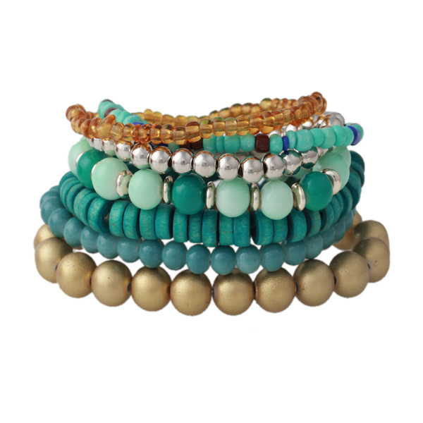 European and American Bohemian Style Women's Bracelet Mix and Match Beaded Multi-Layer Elastic Plastic Resin Beads Bracelet