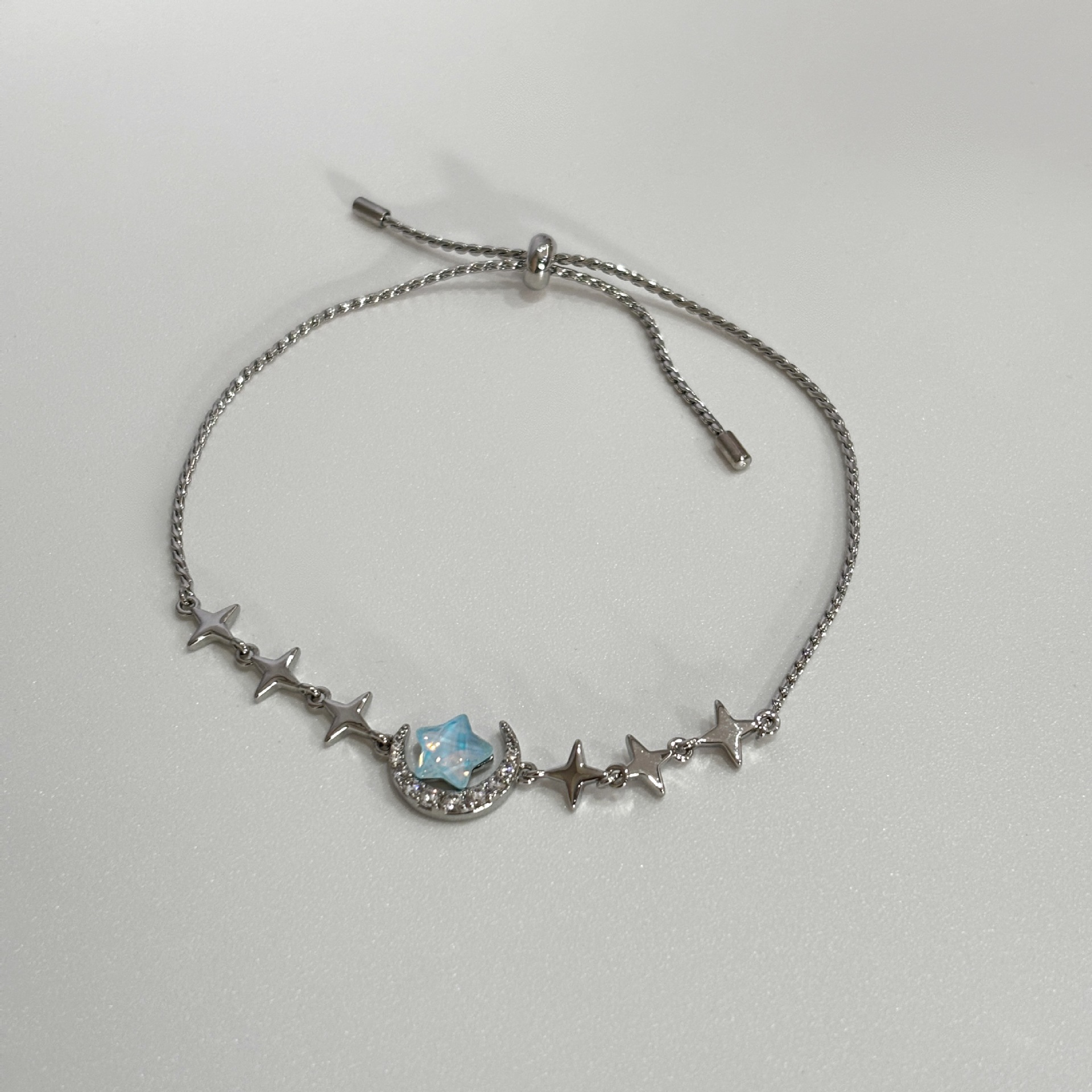 316L Blue Star Moon Three Star Four Mans Star Beads Cute Youth Joker Design Card Bracelet