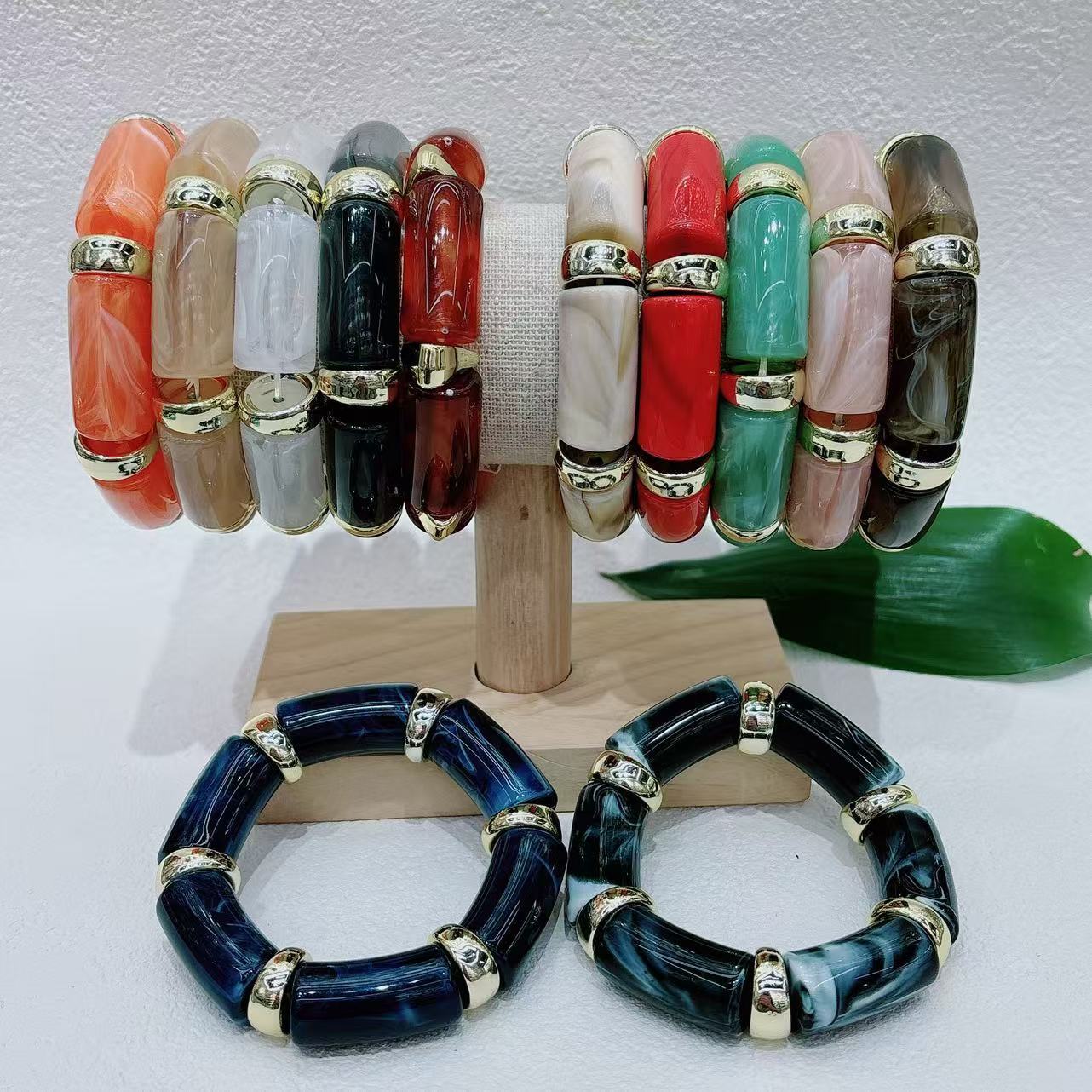 Cross-border Popular Versatile Stretch Bracelet Pearlescent Mix and Match Acrylic Elbow Bracelet Design Sense Bracelet